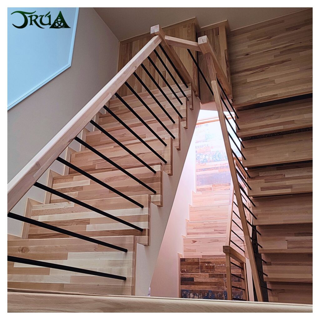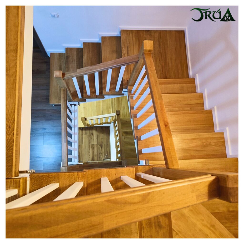Aceste scări (fiind de fapt 2 scări) sunt primul proiect al Trua pe care l-am realizat integral din cherestea brută, treptele și contratreptele corespondente fiind astfel, practic, prelucrate de la zero.